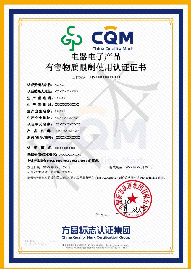 电器电子产品有害物质限制使用认证