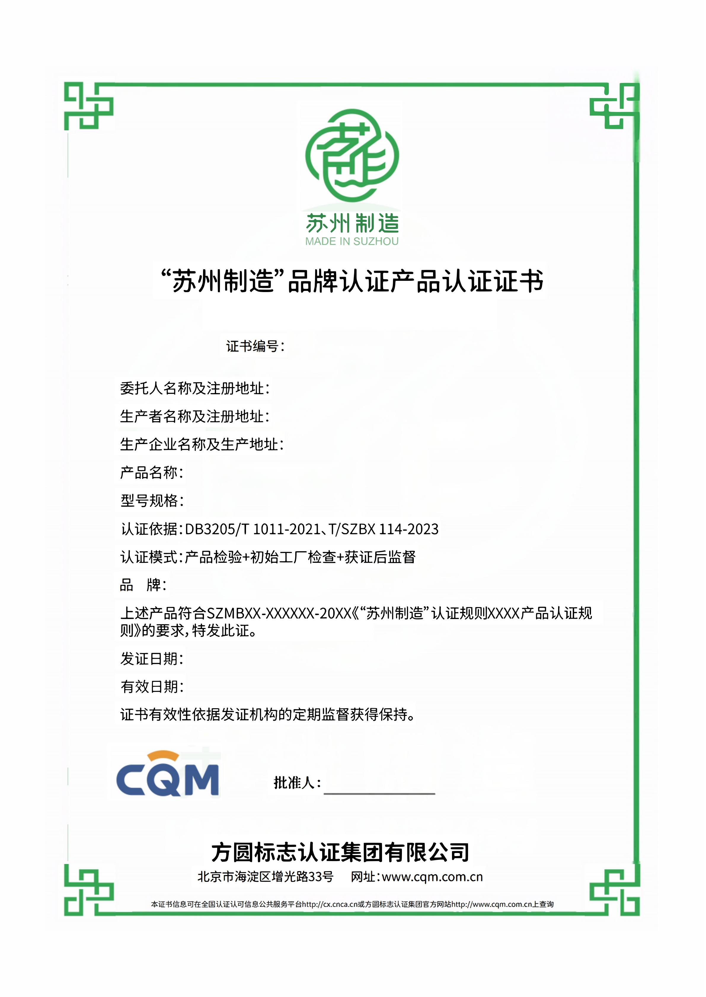 2.“苏州制造”证书样式: