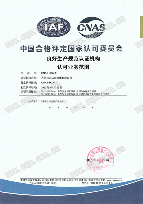 食品安全管理体系认可证书