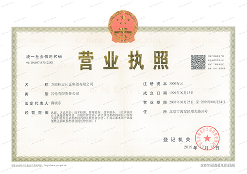 信息安全管理体系认证认可证书