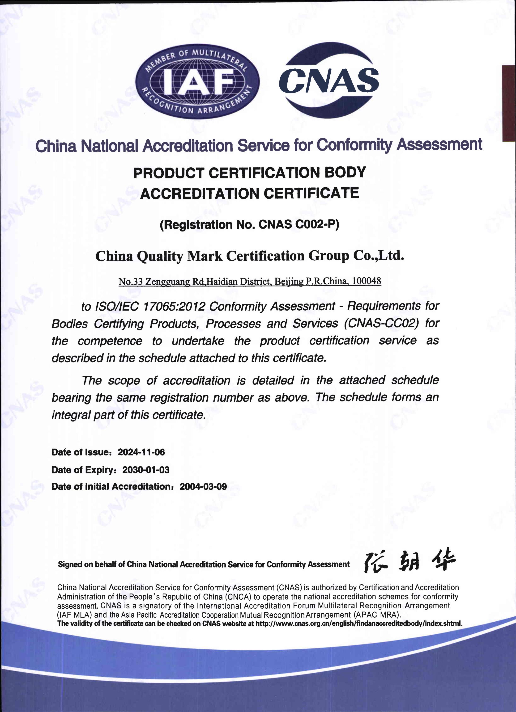 认证机构认可证书(英文)