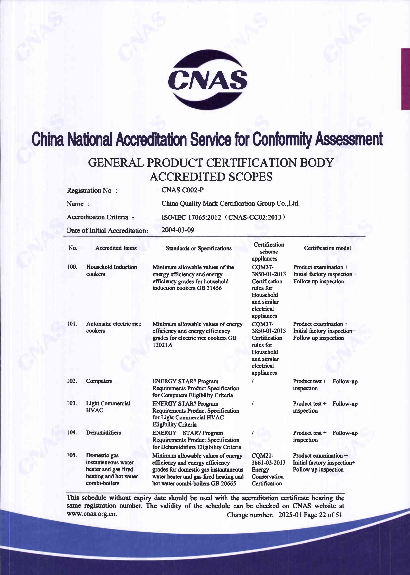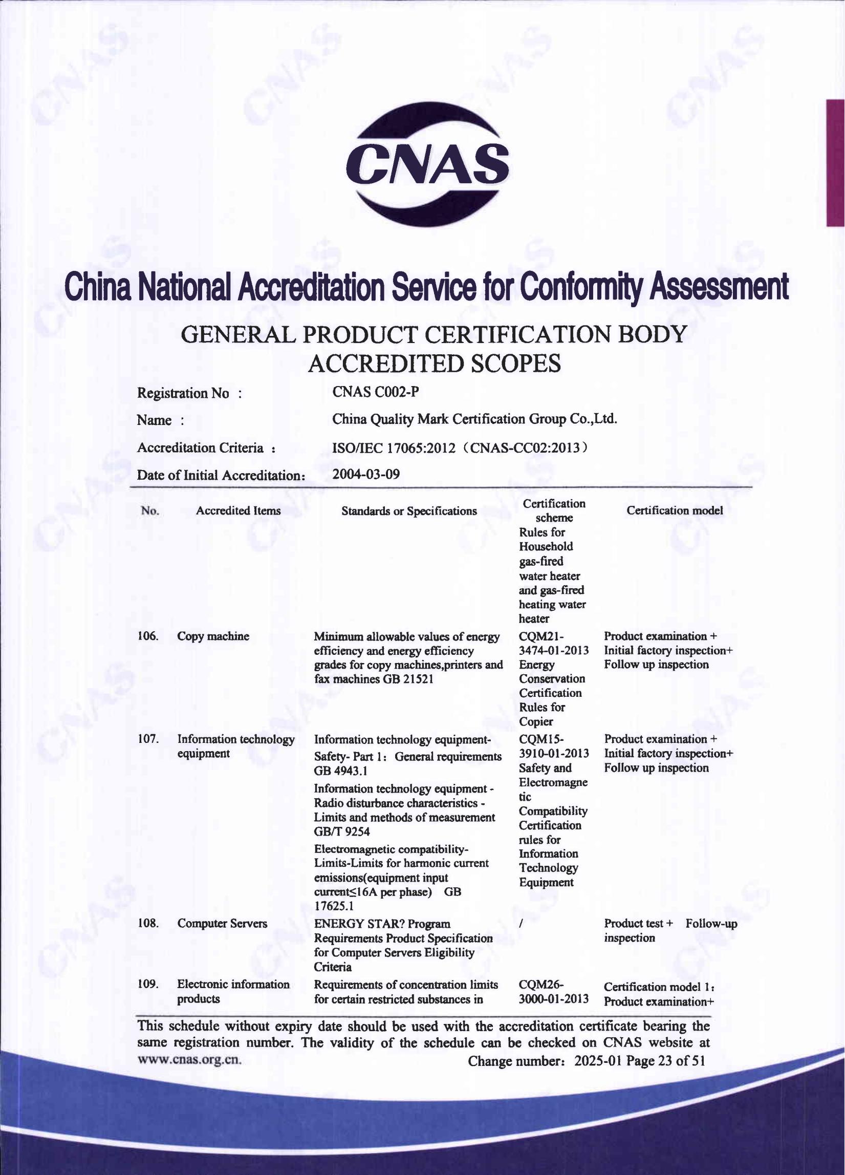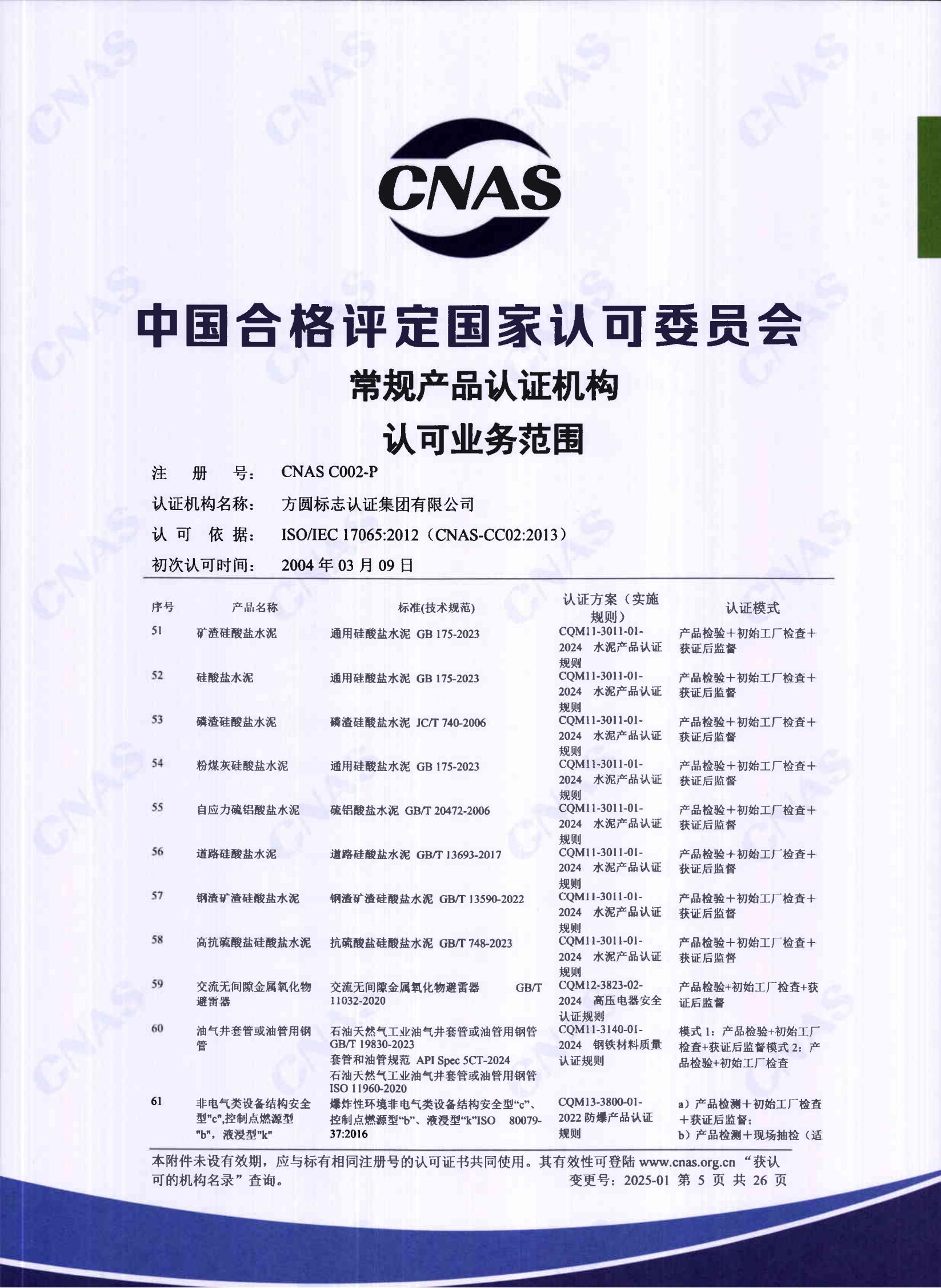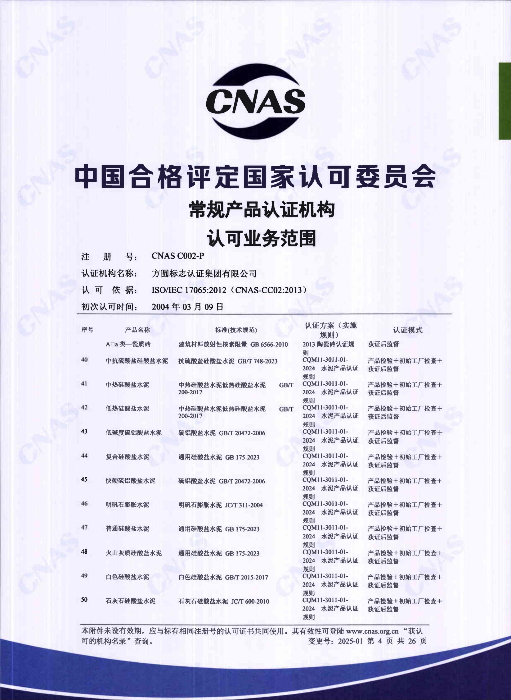自愿性产品认证认可证书