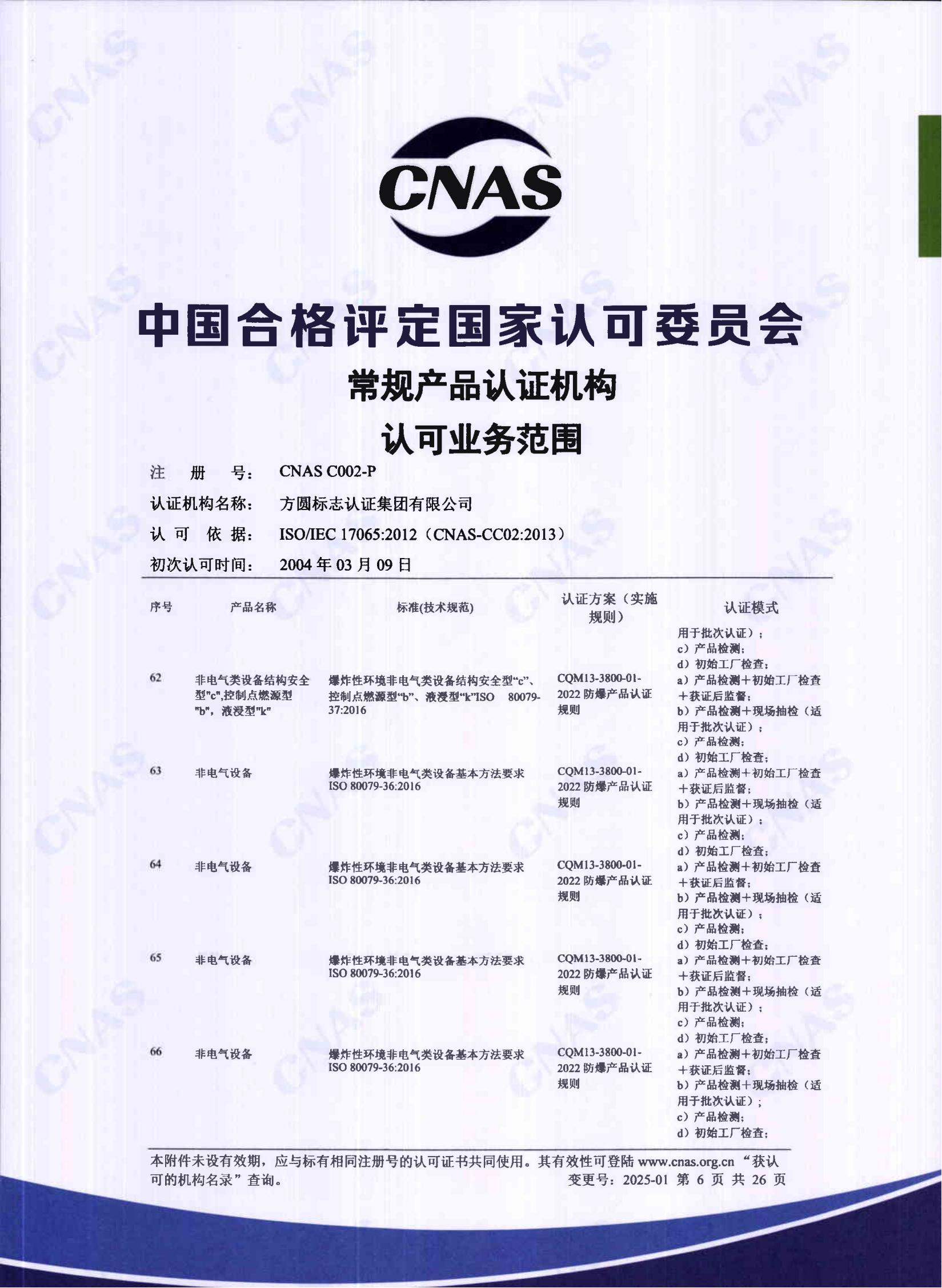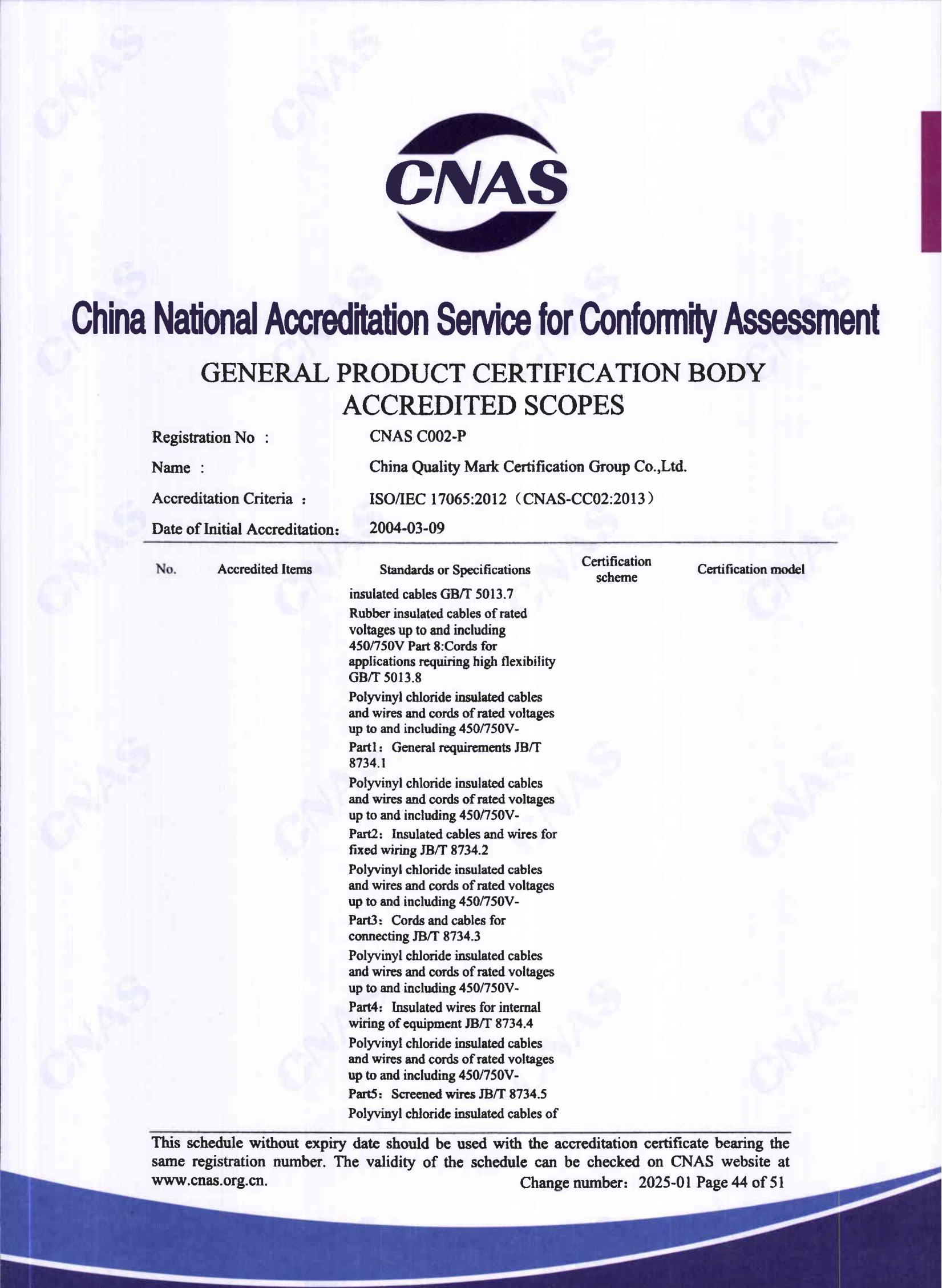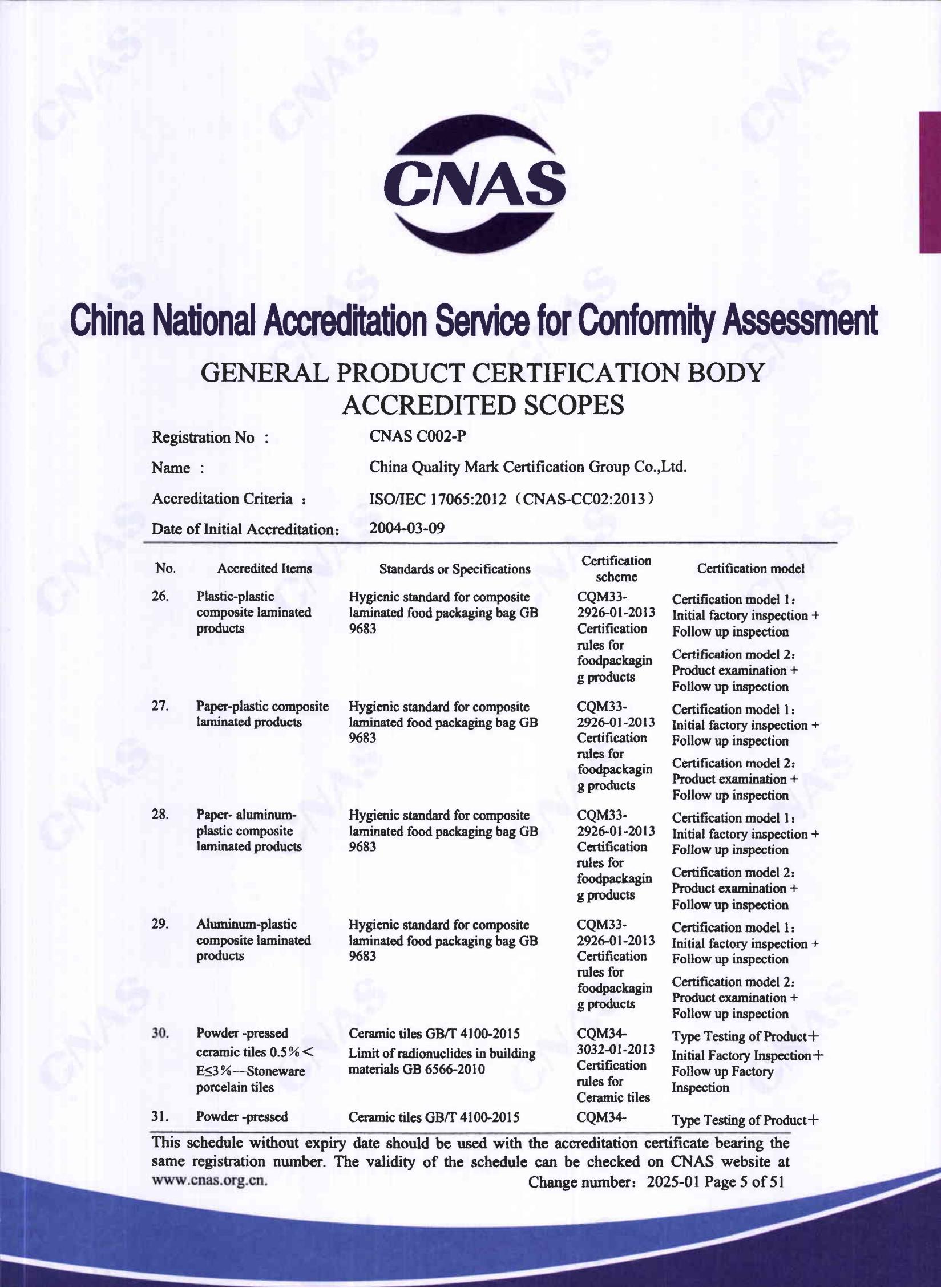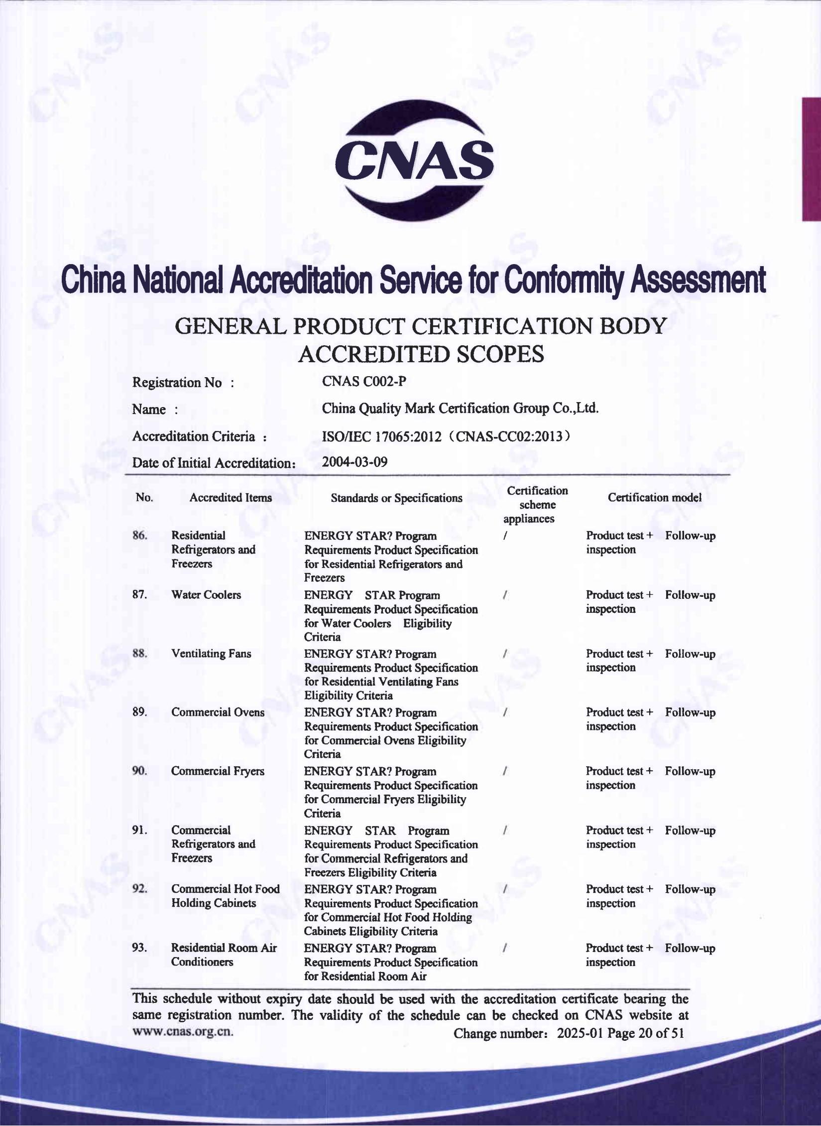 自愿性产品认证认可证书