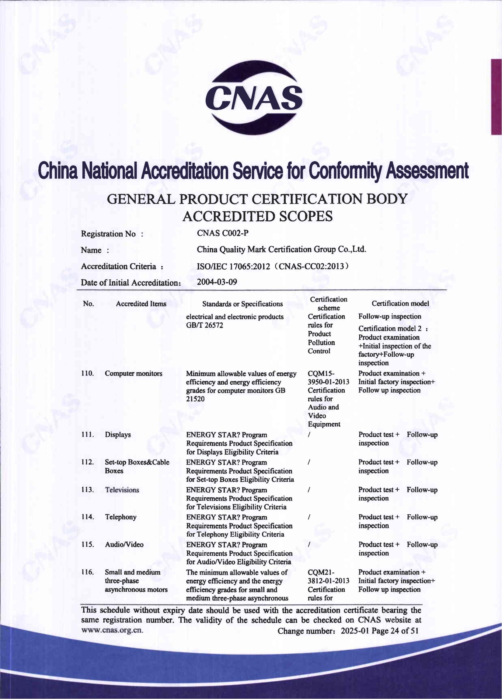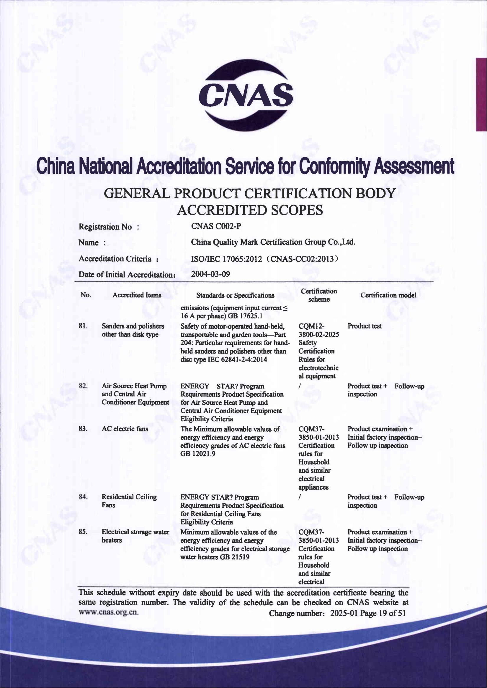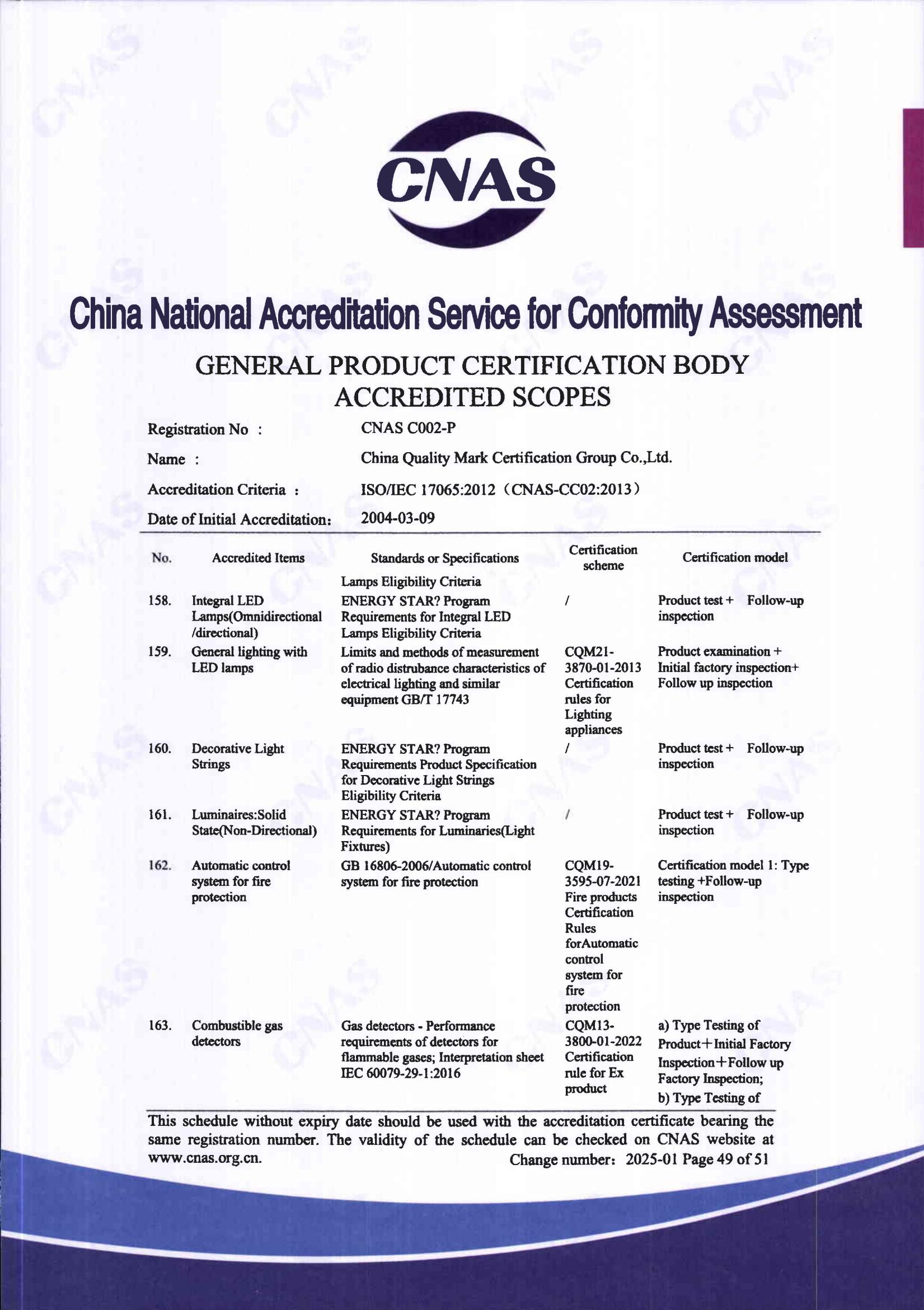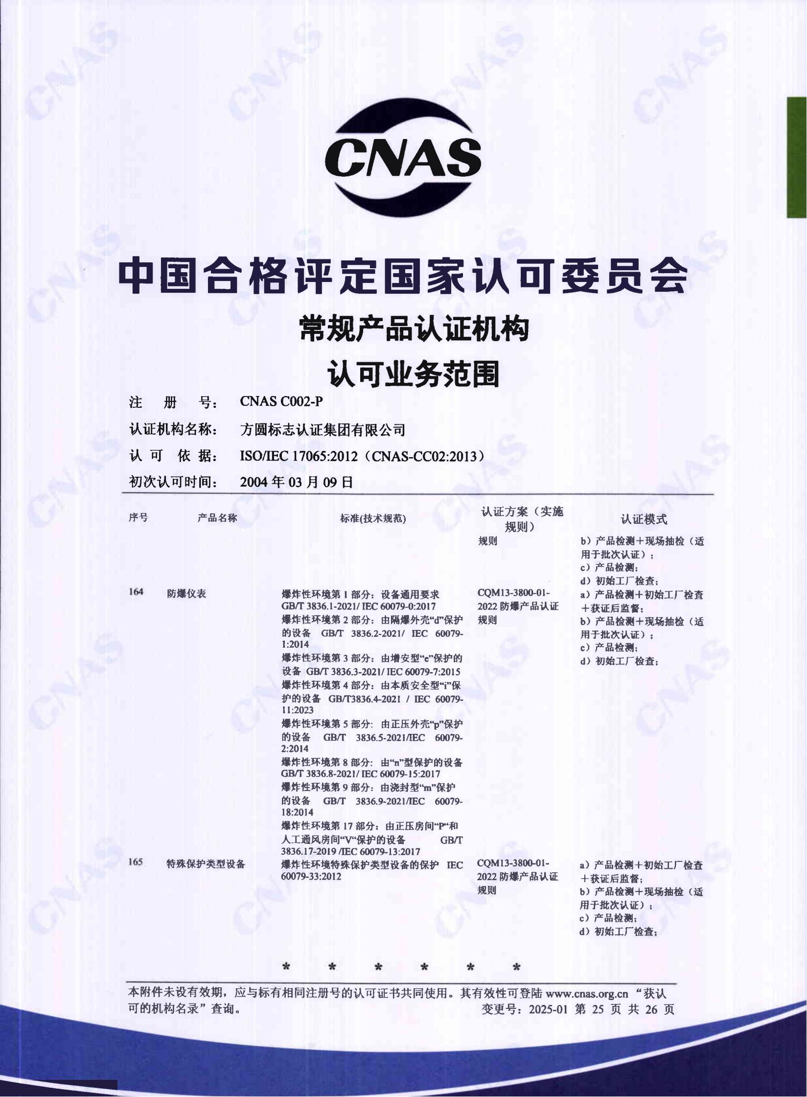 自愿性产品认证认可证书