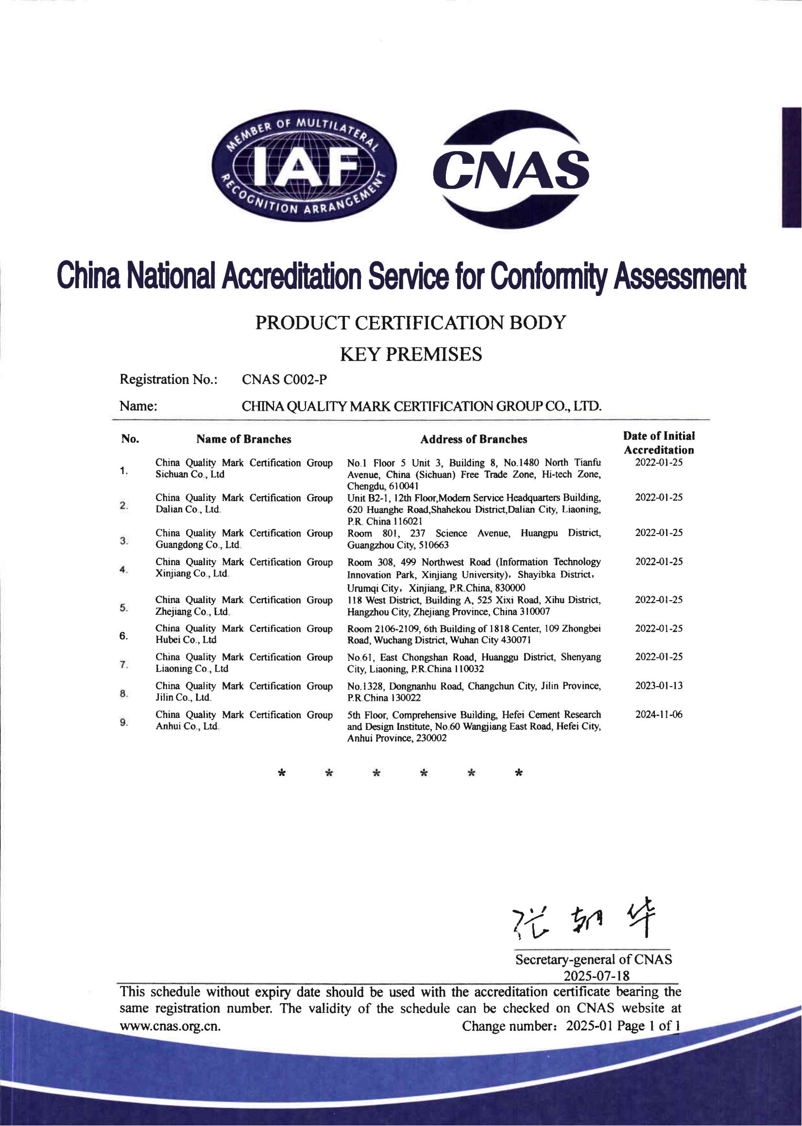 认证机构认可证书(中文)