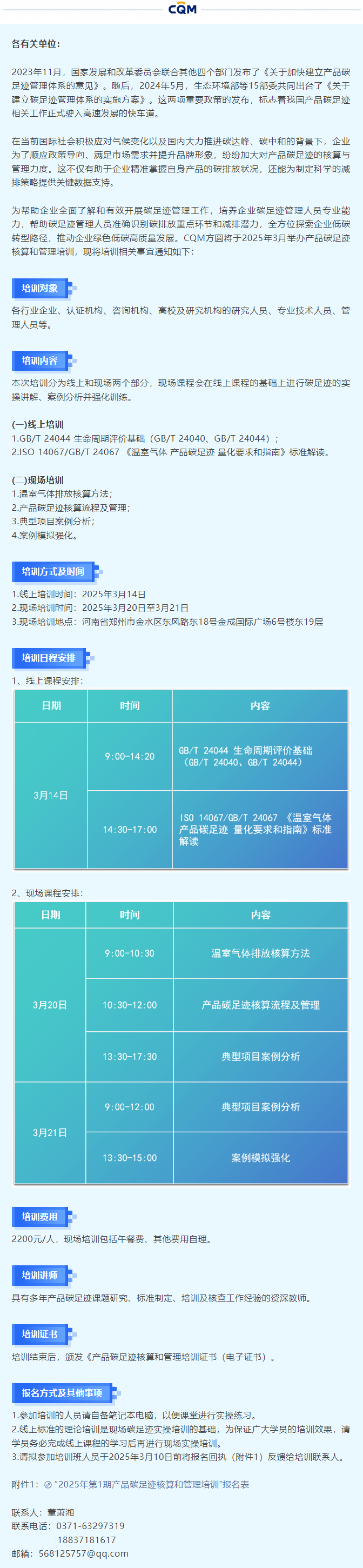 米兰(中国)举办2025年第1期产品碳足迹核算师培训的通知