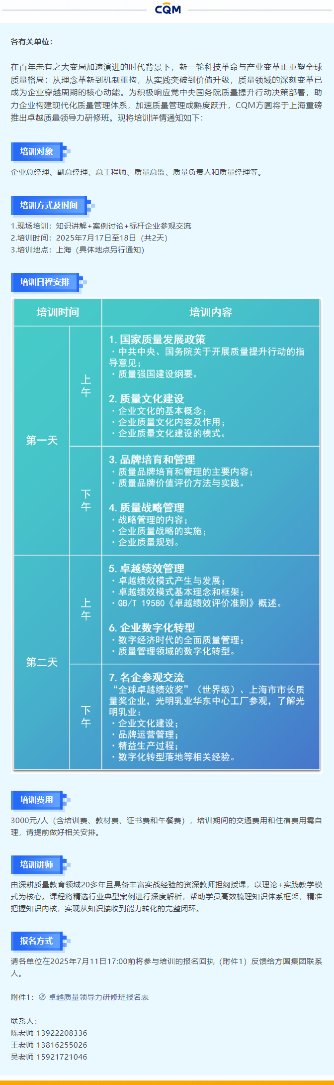 米兰(中国)举办卓越质量领导力研修班的通知