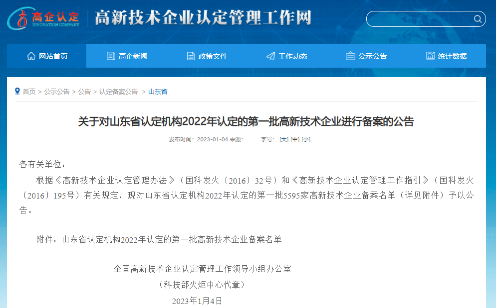 时间:2023年01月12日 近日,根据《高新技术企业认定管理办法》(国科发火〔2016〕32号)和《高新技术企业认定管理工作指引》(国科发火〔2016〕195号)有关规定,方圆标志认证集团山东有限公司通过了山东省认定机构2022年认定的第一批高新技术企业并进行了备案公告。